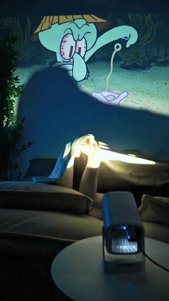 Дори и да нямате голяма стена, няма проблем! Гъвкавите настройки ви позволяват да проектирате перфектно изображение дори в най-малките помещения – или директно на тавана за филмови вечери от леглото.